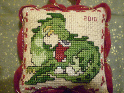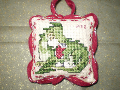 I did a bit of spying and discovered that Kate likes dragons ,and Christmas ornies , so this seemed like the perfect thing to stitch for her.