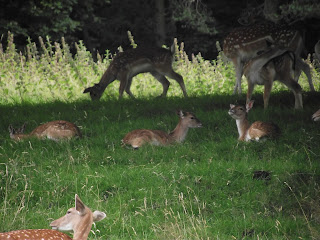 On the way down to the enclosure ,we spotted a few deer in the distance , but don't worry , we got to see them a lot closer later on .