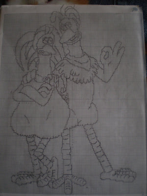A while ago , I asked if anyone knew where I could get a chart from the film "Chicken Run" , I had no joy , but really wanted to stitch one as ... a wedding sampler . Yes . you did read that right. A friend of my husbands is getting married , and his fiancee is mad on Chicken Run and has a whole collection of stuff ,so I thought it would be a unique gift for them.